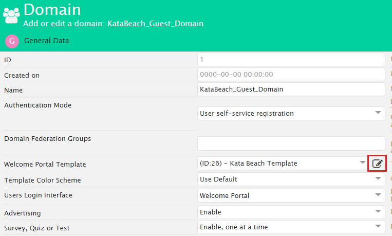 You can find a new Edit button close to fields dealing with Templates, Products and Product policy as Shown Figure Template in the Domain.