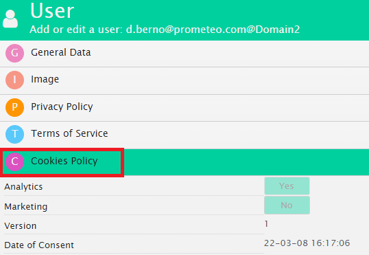 The acceptance of the cookie policy is set on YES by default.